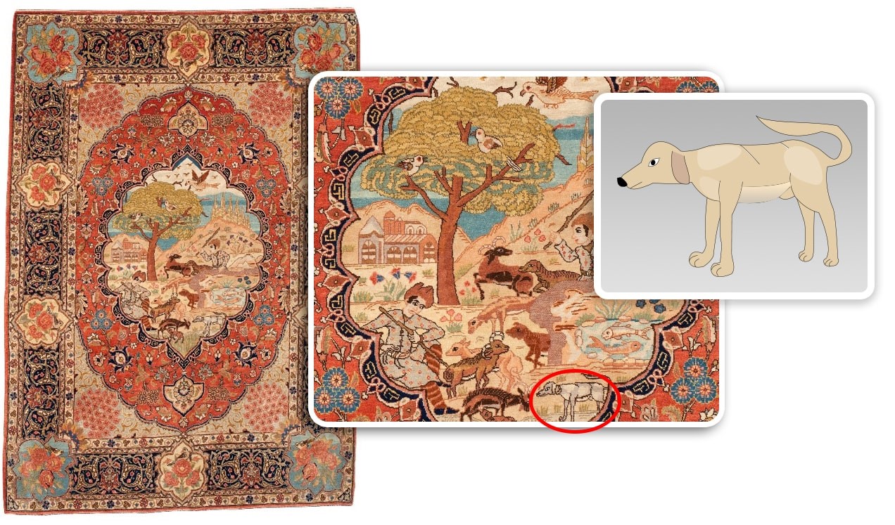 سگ: در فرشهای عشایری نماد محافظت، وفاداری و دورکننده نیروهای منفی است.